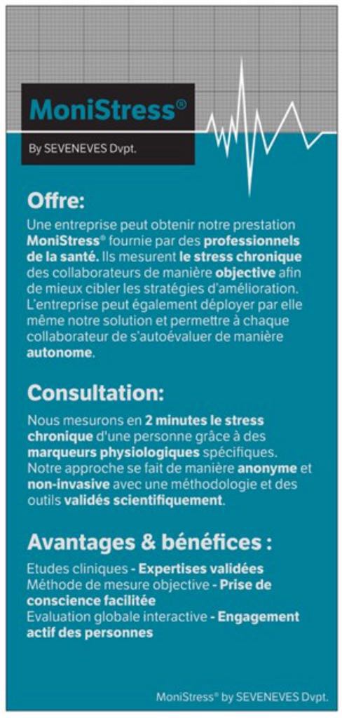La prestation MoniStress® utilise un appareil développé en ce sens. Il sert à objectiver la plainte de la personne et l’appréciation de l’expert en chiffrant le déséquilibre physiologique